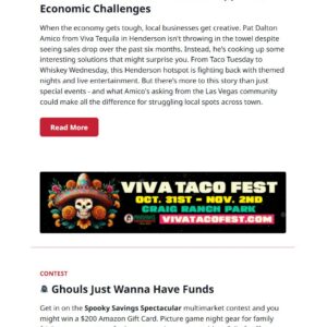 Strategically placed within the heart of the newsletter, three (3) high-impact banner ads grab attention and inspire action with every scroll. Use them to amplify promotions, spark sign-ups, and boost visibility in your local market.